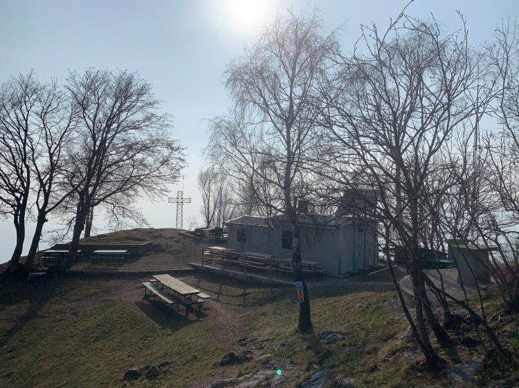 In un paio di kilometri si sale rapidamente ai 1200 metri della vetta, lasciando una baita sulla sinistra ai 1000m di quota. Non c’è più possibilità di abbeverarsi in questo tratto. Il tratto che conduce al piccolo rifugio è scosceso e in cresta ma attrezzato da catene che aiutano a rendere più sicuro il passo.