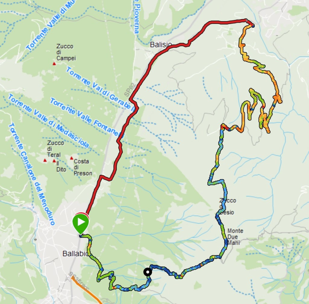 E così oggi abbiamo deciso di salire: un bel vertical da Ballabio al Monte Due mani con discesa dolce a Maggio e rientro a Ballabio da Balisio e ciclabile.