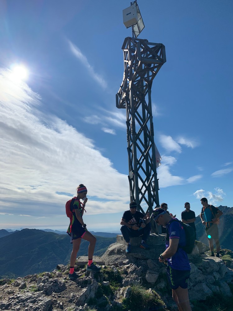Elisa, che per vetta va ogni dì, riconosce in un gruppo in salita, una ragazza che giusto ieri era con lei sul Barro. Buona scusa per selfie di gruppo e per promuovere gli Sky Lario Runners (“siete su Instagram?”, “potremmo iscriverci solo per le divise!”). Vedi Alberto perché non devi mollare mai ad aggiornare???