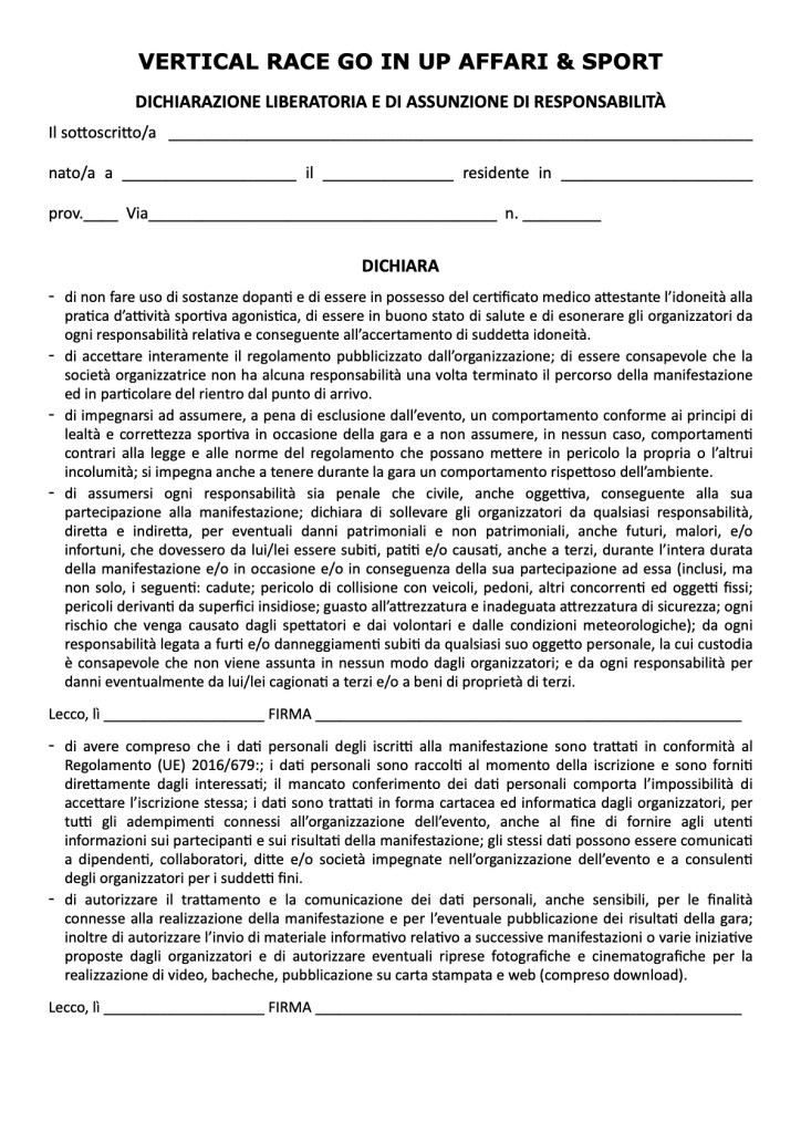 Dalle ore 18.00 alle ore 19.15 firma delle liberatorie, consegna del modulo, verifica del certificato medico e ritiro del pettorale.